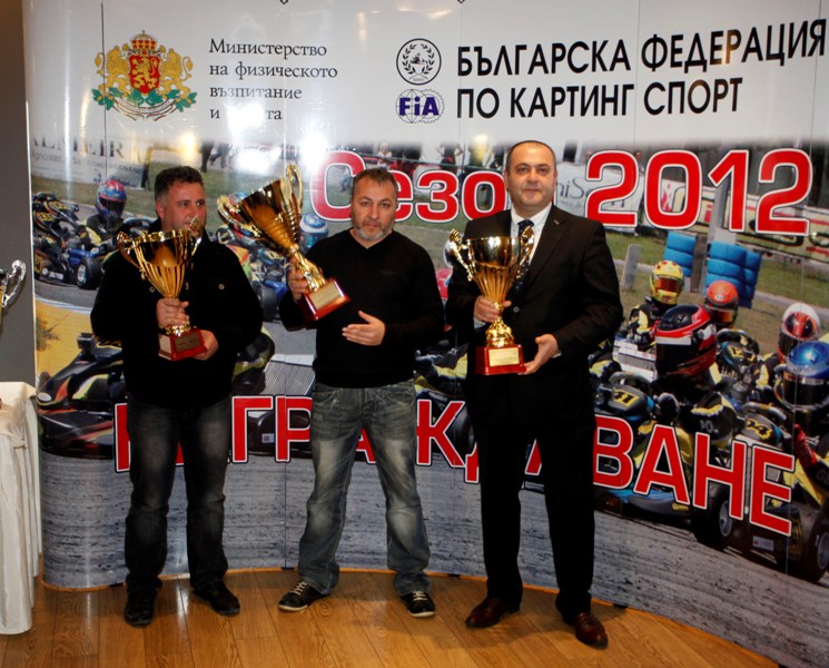 Шампион в клас Rotax Max за 2012 г. е Георги Тачков, който събра актив от 231 точки. Втори този сезон след 11 кръга е Васил Коларов, чиято награда бе приета от брат му Александър, с 221 точки. И двамата представиха достойно страната ни на Световните финали на Ротакс, състояли се на пистата Алгарве в Португалия. Георги кара в клас Rotax Max, а Васил се състезава в клас DD2, в който машините са с две скорости. Трети в българския шампионат е Божидар Печев с 194 точки.