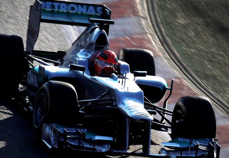 Междувременно стана ясно, че проблемът, спрял вчера Нико Розберг, е бил със скоростната кутия на новия Мерцедес F1 W03. В тима обаче бяха доволни като цяло от прогреса и работата си по автомобила, надявайки се днес да успеят да направят симулация на състезание. До обяд Михаел Шумахер успя да направи серии от съответно 12 и 9 тура с доста постоянни времена около 1:26.3-1:26.8 мин. В началото на втория стинт той даде и едно от най-добрите постижения за първата част от сесията - 1:24.176, което доста дълго бе начело на класирането. Германецът продължи работата си и свали още от времето, като най-доброто си до момента даде в една бърза обиколка.