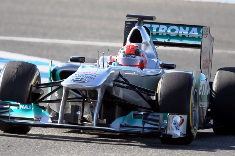 Михаел Шумахер остана най-бързият пилот във втория ден на тестовете на екипите от Формула 1 преди началото на новия сезон. На пистата Херес в южна Испания той записа топвреме днес сутринта, което никой не подобри в следобедните часове. Михаел кара Мерцедес-а от миналия сезон, но с много промени, включително с по-високи ауспуси и програми за управление на двигателя без обдухване на дифузьора.