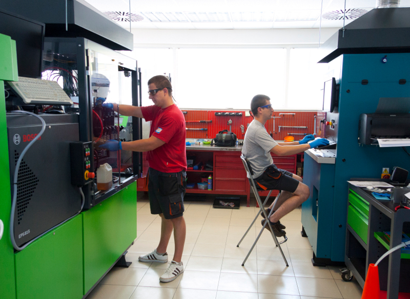 Интересна е фината работа по ремонта на инжекторите и помпите, която се извършва със специални уреди и инструменти, а след това всичко се качва на стендовете, проверява се и настройва както предписва производителят. Всеки инжектор придобива собствен код, който се генерира от системата, която е свързана с главния център в чужбина, и след това по него се разпознава при последващото монтиране и работа. Кодът се изписва на малък стикер, който се залепва на инжектора.