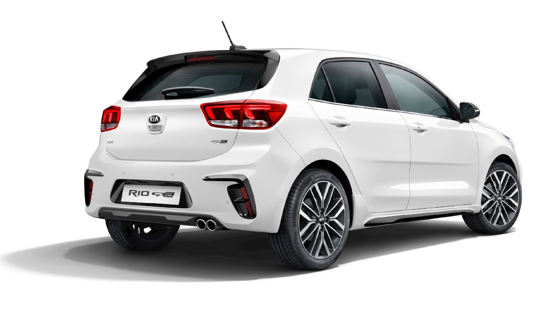 Новото Rio GT влиза в продажба в цяла Европа в края на първото тримесечие на 2018 г. По отношение на екстериора Rio се отличава със своя спортен външен вид и нов, елегантен дизайн, който съчетава решетката тип „тигров нос“, издържана в гланциран черен лак и хром, забележителните 17-инчови алуминиеви джанти и LED-фарове за мъгла с формата на ледено кубче, напомнящи стила на cee’d GT и pro_cee’d GT. Екстериорната визия се допълва от двойна ауспухова тръба, LED дневни светлини, хромирана рамка на прозорците, спойлер на покрива в черен лак и акценти около стъклата.